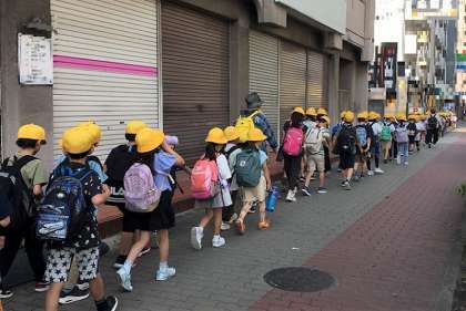 「片側通行、バッチリ!」、海遊館に向けて出発しました。