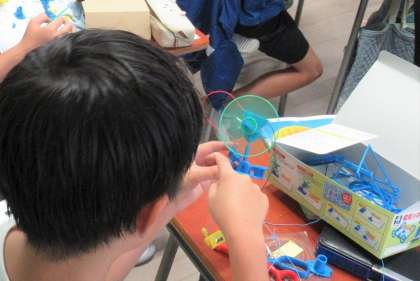 扇風機の模型をつくり、電流のはたらきを調べました。