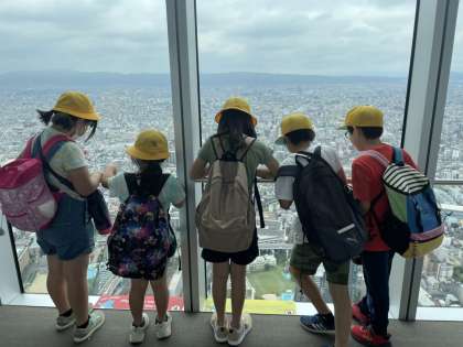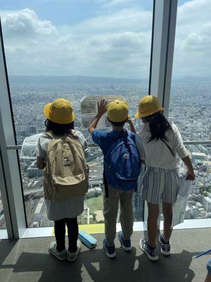 3年が社会見学であべのハルカスに行きました。展望台から大阪の様子を見学できました。