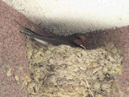 一度、巣を崩されましたが、ツバメは巣づくりを続けています。