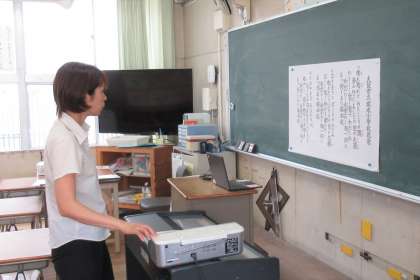 2年生は、塚本小学校歌の歌詞が見えているか、校歌が聞こえているかを答えました。