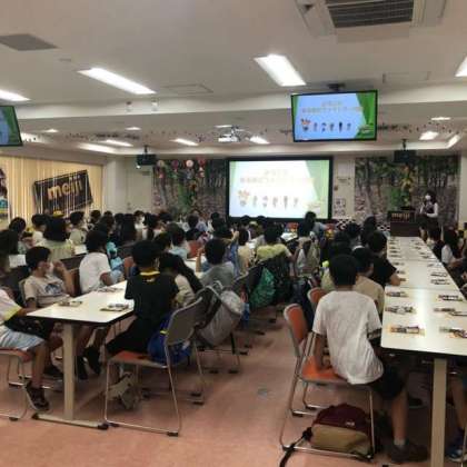 3年が社会見学で明治なるほどファクトリーに来ています。