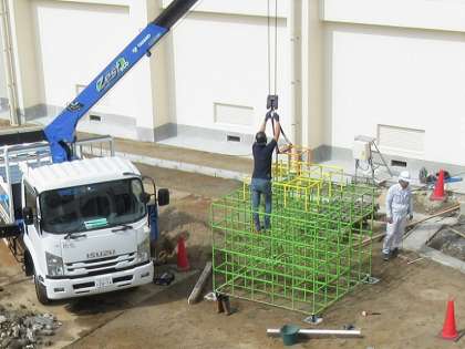 体育館兼講堂の外回りはできましたが、内部や周囲の工事が進められています。ジャングルジムとウンテイが設置されました。使用できるのは10月からの予定です。不便な学校生活がまだ続きます。