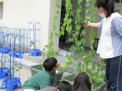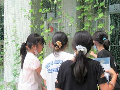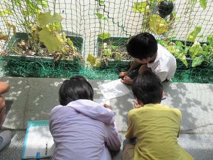 ヘチマ、ヒョウタンを観察し、スケッチしました。