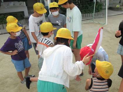 靴のサイズの小さい順に、列を並び替えます。リーダー・副リーダーが中心となり、班のメンバーの靴を確認していきます。
