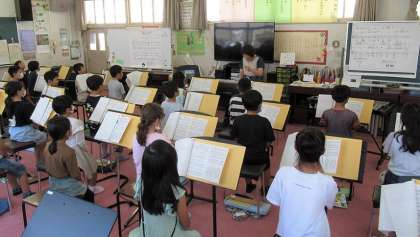塚本小学校歌を歌詞の意味を考えながら、歌いました。