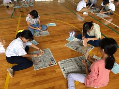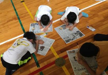 2日間の林間学習の思い出を言葉と絵にしました。キャンプファイヤー、魚つかみ、カレーライス、スイカ、星空、熱心に書いています。