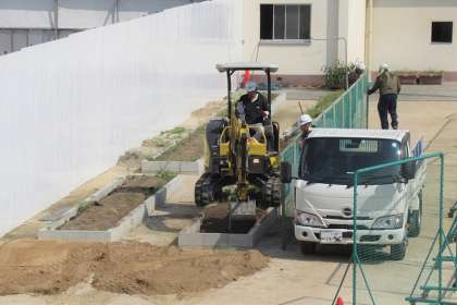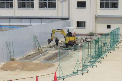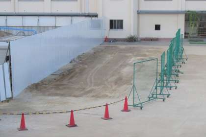 朝に工事が始まり、夕方にはもとの運動場に戻っていました。