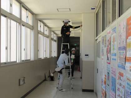 火災が発生した際に、正しく防火扉が閉まるか等の点検を行いました。