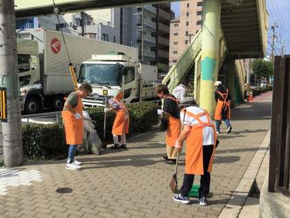 塚本地域の連合振興町会の皆さんが、月1回、学校周りの清掃を行っています。