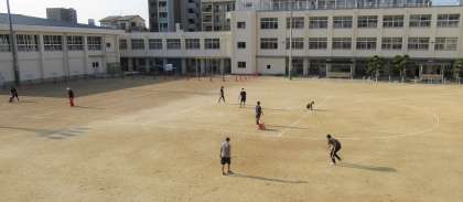 運動会の練習が本格的に始まるのはまだ先ですが、運動場が広くなったので運動会用のトラックの線を引いてみました。