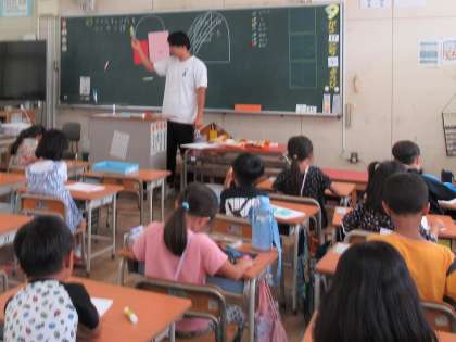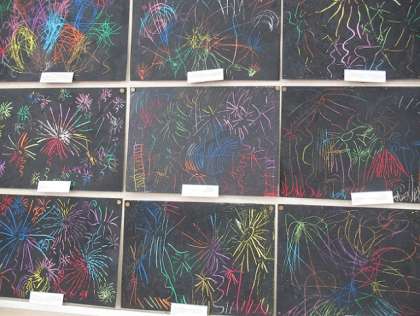真っ黒に塗った画用紙は、夜空に咲く花火になりました。学習参観でご覧いただけます。今後は、「アイスキャンディー」をつくります。