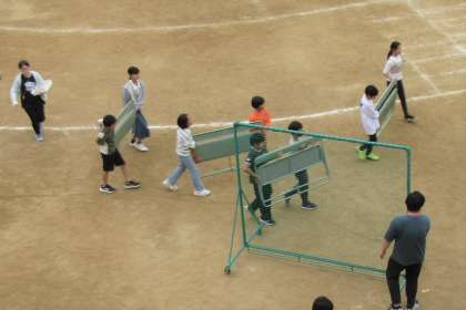 「さすが、高学年!」、運動場の小石拾い、整地、本部や来賓席、敬老席の机・いすの準備等を、主体的に行動していました。
