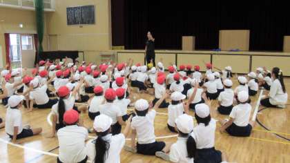 3年生は、3クラス合同体育の際、授業の最初に「シナプソロジー(脳を活性化させるトレーニング)」に取り組んでいます。