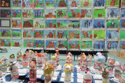 写真:上から1年、5年、2年の展示