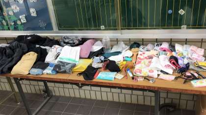 なお、玄関に持ち主の分からない落とし物を置いています。なくした物がないか、ご確認ください。