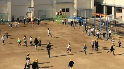 休み時間は、運動場で元気いっぱい過ごしますが、チャイムが鳴ると、教室に戻り、先生のお話をしっかり聞いていました。