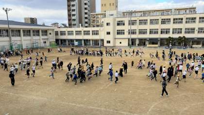 休み時間に、「かけあし週間」として、奇数学年と偶数学年に分かれてかけ足をします。