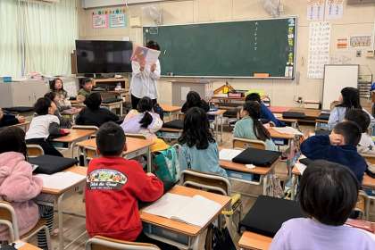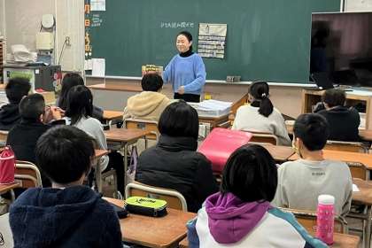 1月19日の朝学活で、「おはなしポケット」の皆さんが、絵本の読み聞かせをしてくださいました。〔写真 左:1年 中:5年 右:6年〕