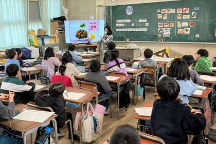 他校から栄養教諭の先生を迎え、「食べ物の旬」について学びました。