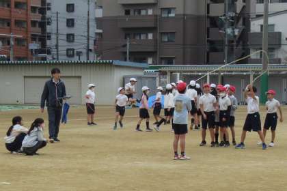 体力づくりの一環として、奇数学年と偶数学年に分かれて、休み時間に大なわとびに取り組みます。初日は、あいにくの雨で中止となりました。〔写真 体育(4年生)での大なわとびの様子〕