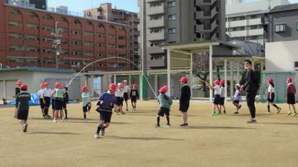 運動委員会のメンバーが、大なわを回すコツや跳ぶタイミング等を解説した動画をつくってくれました。各学級で視聴しましたが、とても好評です。