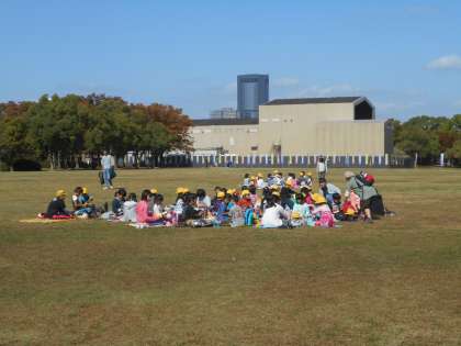 気持ちのよい芝生で仲よくお弁当を食べました。