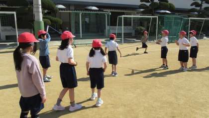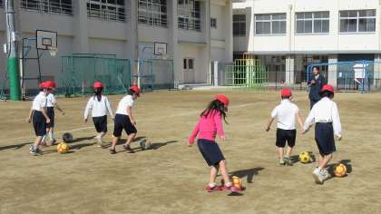 (写真:2年の合同体育の様子 クラス単位で、なわとび、サッカー、おおなわをローテーションしました。)