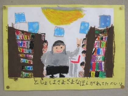 「給食はおいしいよ」「図書室の本はおもしろいよ」「作品展があるよ」「いろんなお勉強をするといろんなことがわかるよ」等のメッセージも添えられています。