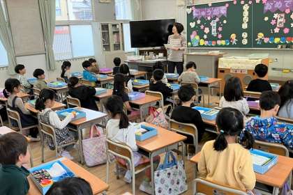 塚本小学校を含め学校には、楽しく安心して学校で過ごすためのきまりがあります。例えば、お道具箱は、机の中の左側に入れる。1年生も、これからどんどん覚えていきます。