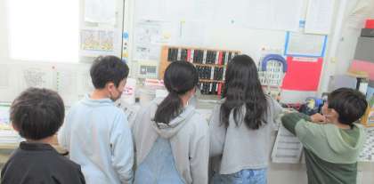 給食時に、給食委員のメンバーが、クイズを交えながら、献立や食材についての話題、食に関する知識を、放送で紹介してくれます。