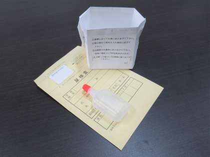 明日(4月11日)の朝、最初の尿を採って、提出してください。