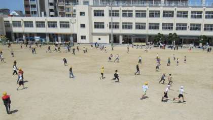 今日は、青空で、子どもたちは、ジャングルジム、うんてい、鉄棒、一輪車、なわとび…、思い思いに楽しんでいました。運動場の真ん中では、元気に駆けまわる姿も見られました。
