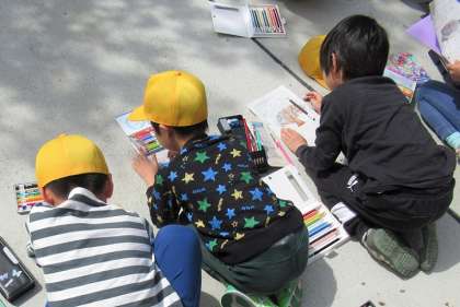 「春さがし」、講堂前の桜を観察し、スケッチしました。