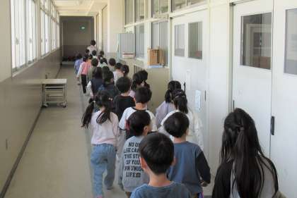 自分たちの教室から離れて、入学式を行った講堂、図書室、理科室、音楽室…、いろいろな教室を巡りました。