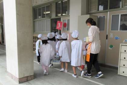 6年生は、「すくすくウォッチ」に取り組む関係で、1年生のお手伝いができませんでした。1年生は、自分たちで、給食の運搬、配膳をしっかり行いました。