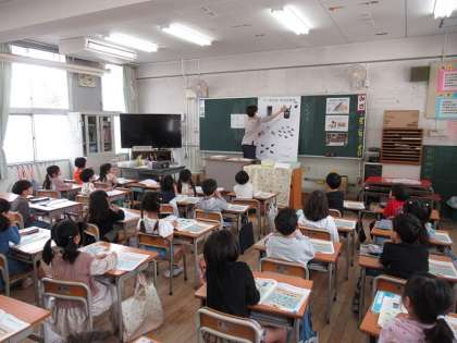 「えんぴつのもちかた」からはじめ、ひらがなや数字を書く練習をしています。(写真:算数で、数のおおいほうに丸をつけました。)