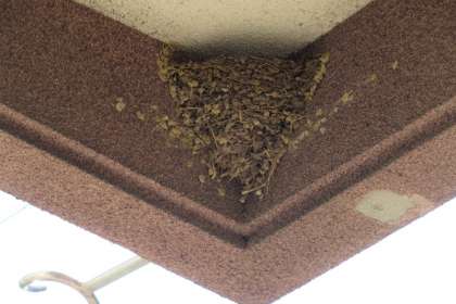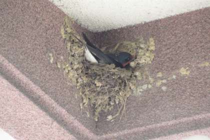 ツバメはたくましいです。2日程で壊された巣を修復し、子育てを再開しています。(写真 左:4月25日 中:4月26日 右:4月28日)