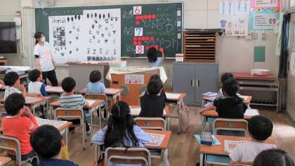 習ったひらがなは、教室後ろの黒板に貼っていきます。