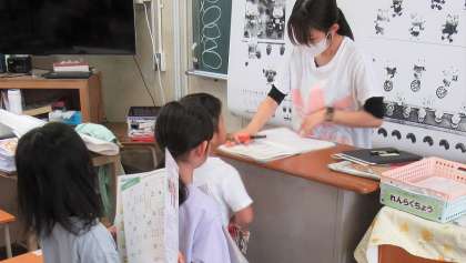 子どもたちは、丁寧に書く練習して、先生にマルをつけてもらいます。