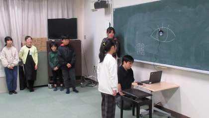 集会委員のメンバーが、新しく塚本小学校に赴任した先生に関する問題を出しました。