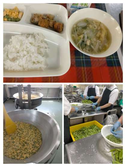 えんどうまめは中学校13.7kg 小学校11.1kgをひとつひとつ手作業でさやからはずしています。