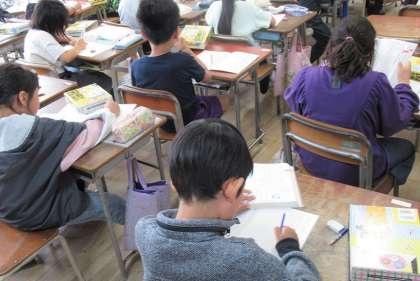「楽しくなる」は「楽しい」、「書きたい」は「書く」等、言い切りの形にして言葉の意味を調べます。