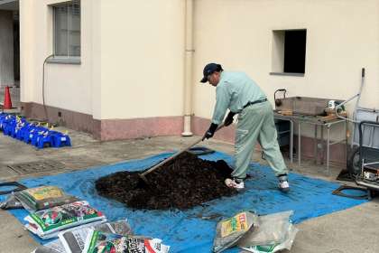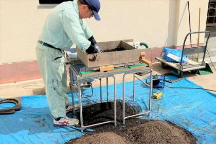 ふるいにかけ、新しい土と混ぜて、野菜用の土にしてくれました。