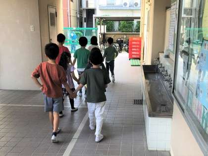 2年生がやさしく1年生にいろいろな教室を紹介しました。