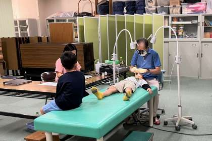 検診前に「よろしくお願いします。」、検診後に「ありがとうございました。」学校歯科医の先生にあいさつします。