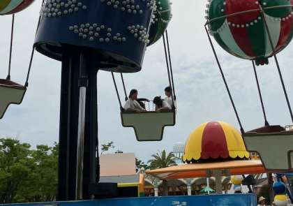 メルヘンな乗り物から絶叫マシーンまで様々なアトラクションを楽しんでいます。