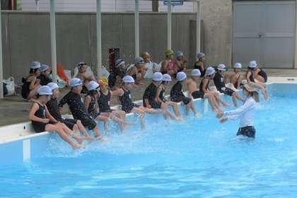 はじめて塚本小学校の25mの大きなプールに入りました。