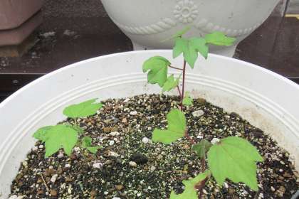 昨年はオジギソウでしたが、今年はワタを育てます。(写真:右端)