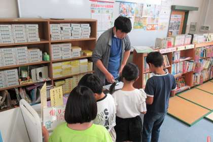 本に親しませるには、ご家庭でもお子さまが手にしやすい所に、本を置いてみてはいかがでしょう。〔写真:4年生〕